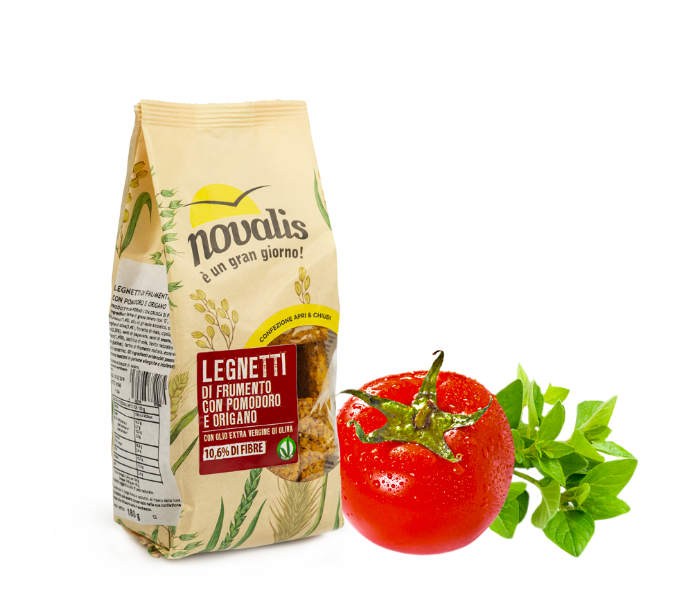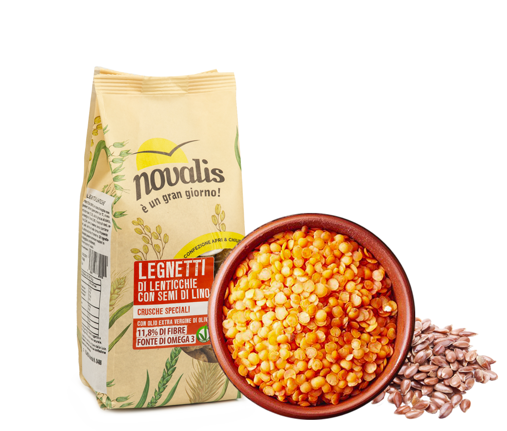 soft wheat flour type “0”, red lentil bran (13.3%), high oleic sunflower oil, extra virgin olive oil (3.6%), corn floret, linseed (2.4%), sesame seeds, natural yeast (contains gluten), salt, soy lecithin, malted wheat flour, natural rosemary flavor. May contain traces of celery.