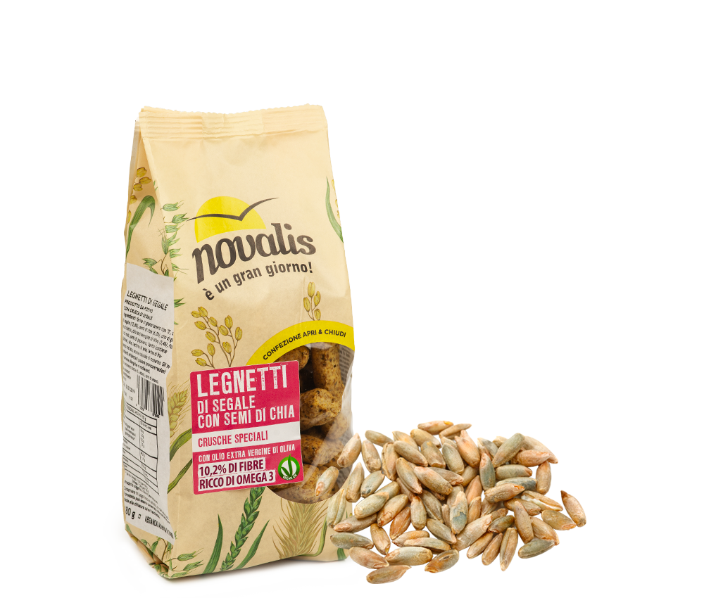 soft wheat flour type “0”, rye bran (12.6%), chia seeds (6.3%), high oleic sunflower oil, extra virgin olive oil (3.4%), corn foil , poppy seeds, natural yeast (contains gluten), salt, soy lecithin, malted wheat flour, natural rosemary flavor. May contain traces of sesame seeds, celery.